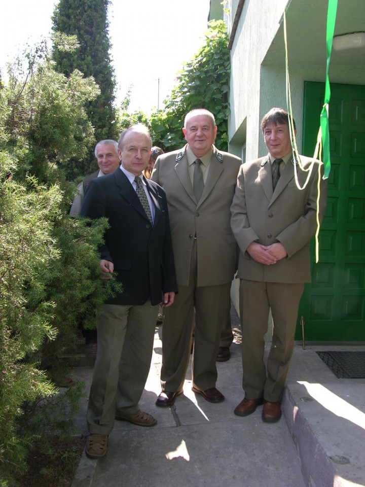 Otwarcie sali edukacyjnej ZNPK  Przedbórz  2004,na pierwszym planie dyr. Hieronim Andrzejewski dalej dyr. ZNPK Zbigniew Janecki, nadl. nctwa Przedbórz Andrzej Gapiński,